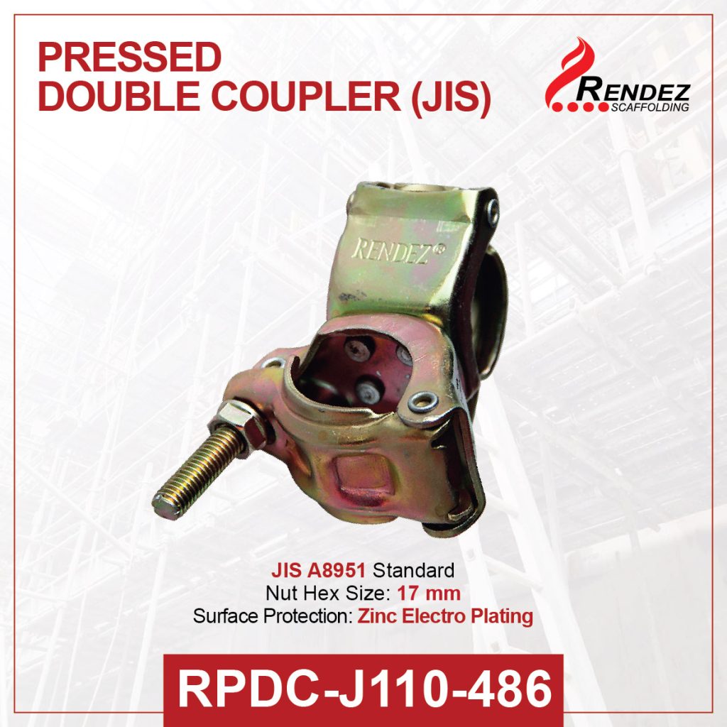Clamp Fixed scaffolding conform JIS A 8951 : 1995 Standard Standard with the material and thickness of pressed steel plate +/- 3 mm is entered to the light-duty class. Commonly used in civil and infrastructure projects. With a fixed function on / off (90 degrees) in a scaffolding structure greatly simplifies the assembly process Rendez tubular scaffolding system itself. Symmetrical angle of the clamp scaffolding is very important because the scaffolding was built to be easier and more safety. The main function of this clamp is binding between the pipe position Horizontal and vertical position in a state fixed on / off. This material is finished with Electro Zinc Plating.